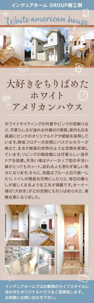 ヴィンテージスタイル、カリフォルニアスタイル、フレンチスタイル、プロヴァンススタイル、アメリカンスタイル、モダンスタイルの家のことなら、私たちインデュアホーム春日井南が、こだわりの住宅を自信をもって心を込めておつくりします。